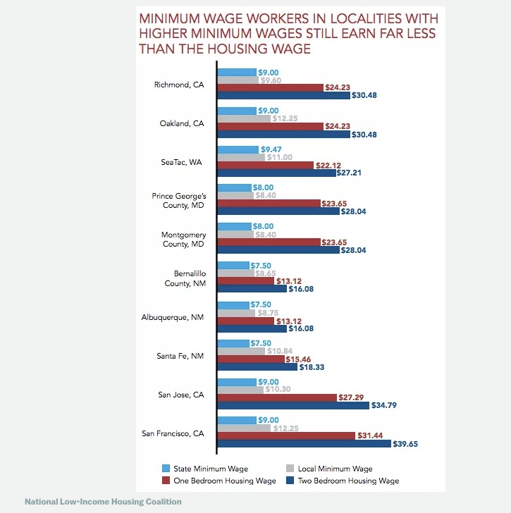 There is no state in the union where a full-time, minimum-wage worker can afford to rent a one-bedroom apartment for less than 30 percent of his paycheck (which is a standard measure of housing affordability).